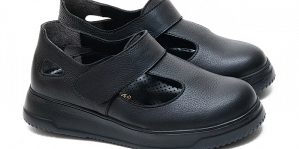 Туфли регулируются по полноте и подъему при помощи ремешка с липучкой. Подошва обладает нескользящим рельефом и повышенной гибкостью. Анатомическая съемная стелька с верхом из натуральной кожи.